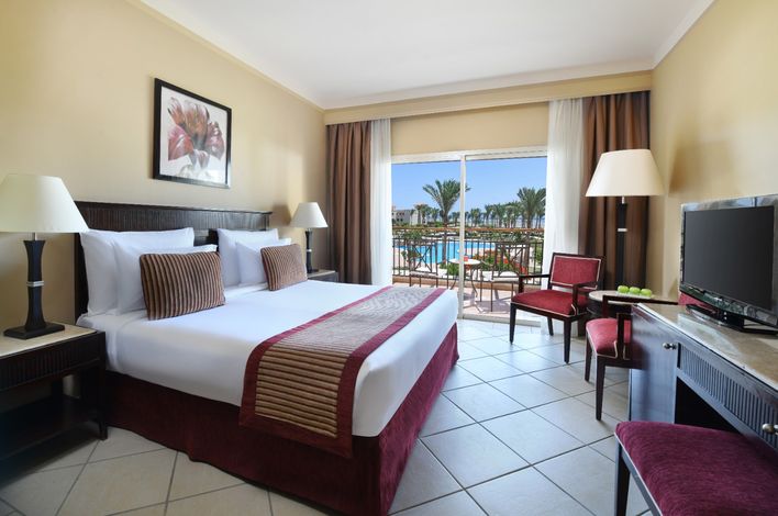 JAZ Mirabel Beach – Superior, Queensize-Bett, Poolblick